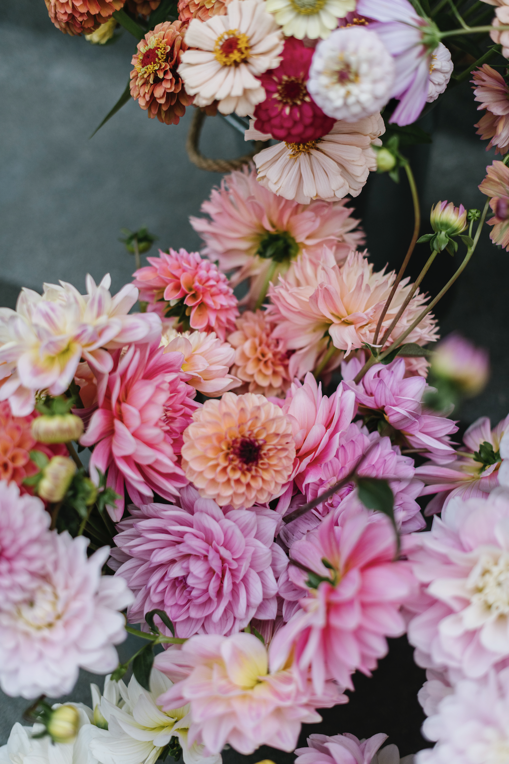 Buckets of flowers are available for pick up from my farm from July until the end of October. They are the perfect way to create DIY arrangements for weddings and events. The buckets of flowers will be filled with a minimum of 50 stems of the freshest flowers that are available at that time. I will do my best to accommodate the color palettes requested. One bucket of flowers will fill approximately 5 quart sized mason jars. Greenery is not included in the buckets.