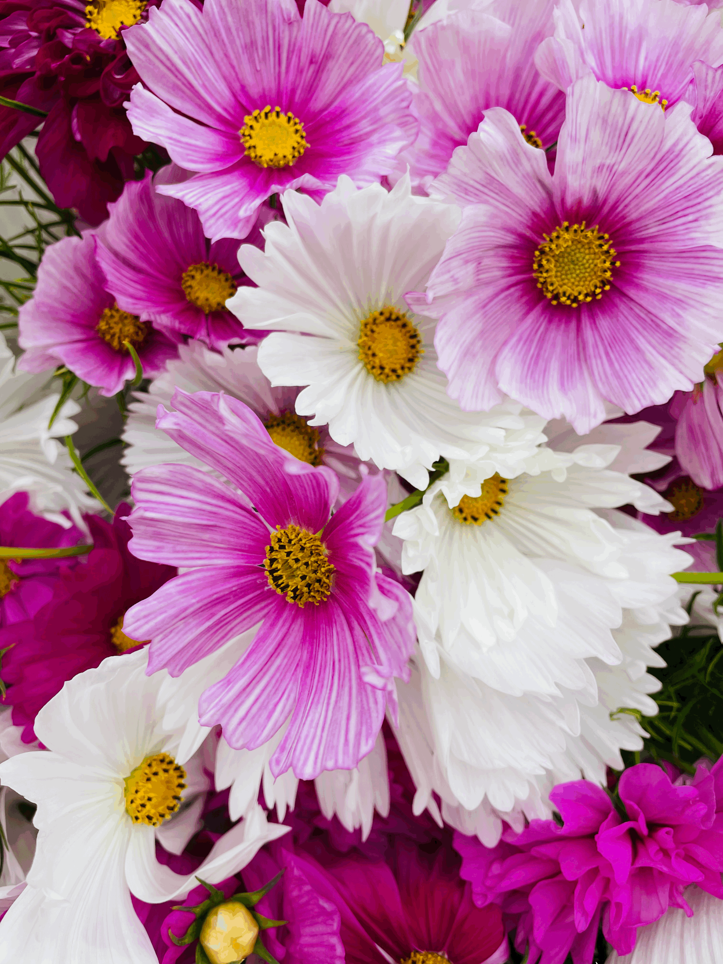 Cosmos are such beautiful flowers to have in a cutting garden. With their long slender stems that dance in the breeze. They are perfect to cut and have in a bouquet on your kitchen table.